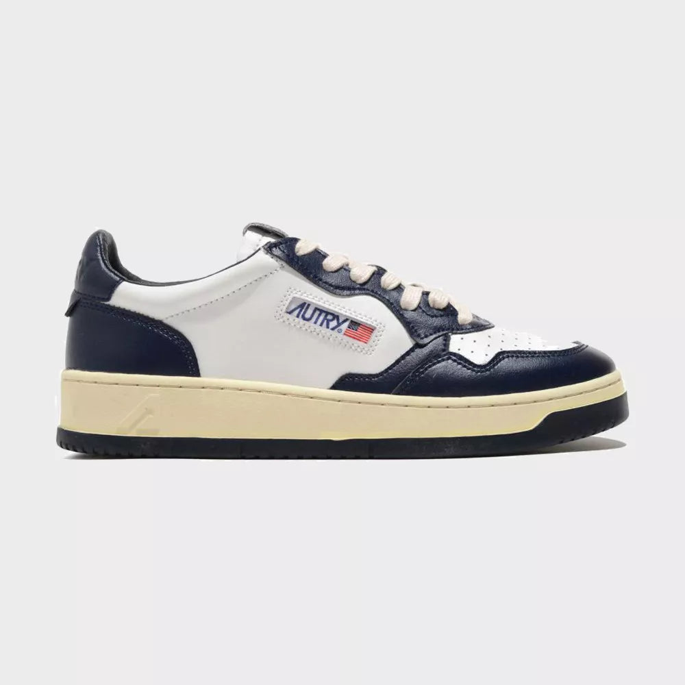 Autry Medalist 01 Low White/Blue – Des sneakers rétro-moderne alliant confort, élégance et style décontracté pour un look urbain tendance.